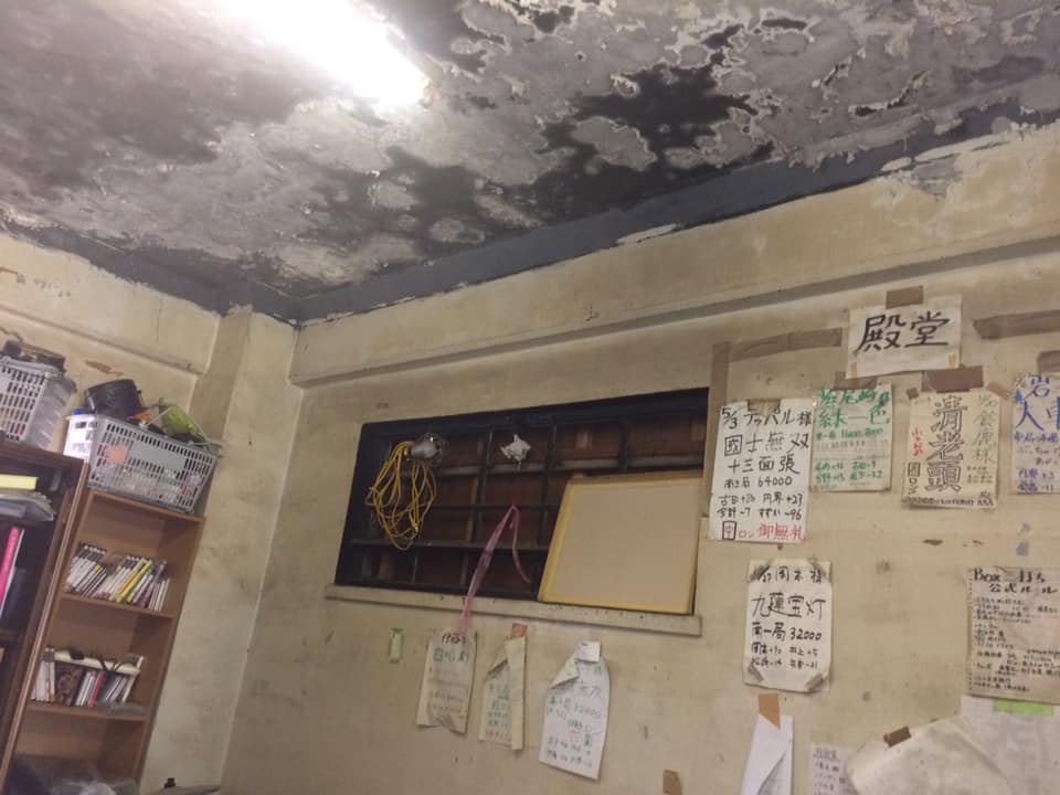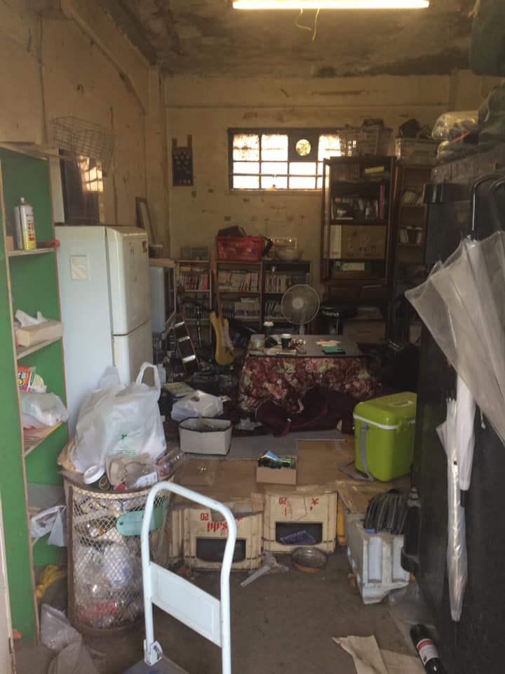 物があふれ、天井は30年前の火災のまま真っ黒でした。